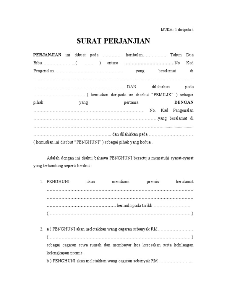 Doc Surat Perjanjian Sewa Kedai Rent Agreement Nedy Elmayra Academia Edu